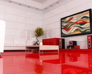 Framed Mosaic Wave Art for a Modern Red Interior
