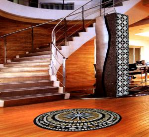 Blue Aqua Vibe Interiors with Marble Mosaic Floor Art