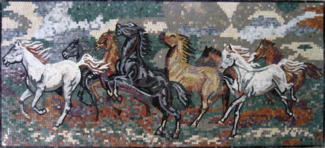 AN183 Rectangular galloping horses mosaic AN282 Black horse in motion mosaic AN218 Linear pastel horse mosaic AN104 Mother & baby horse mosaic |