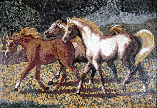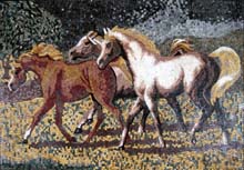 AN183 Rectangular galloping horses mosaic AN282 Black horse in motion mosaic AN620 Two white fighting horses mosaic AN316 Majestic white jumping horse mosaic AN218 Linear pastel horse mosaic |