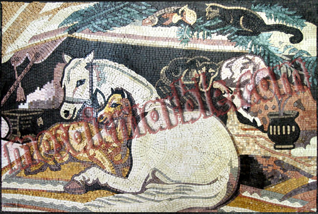 AN183 Rectangular galloping horses mosaic AN282 Black horse in motion mosaic AN620 Two white fighting horses mosaic AN316 Majestic white jumping horse mosaic AN218 Linear pastel horse mosaic |