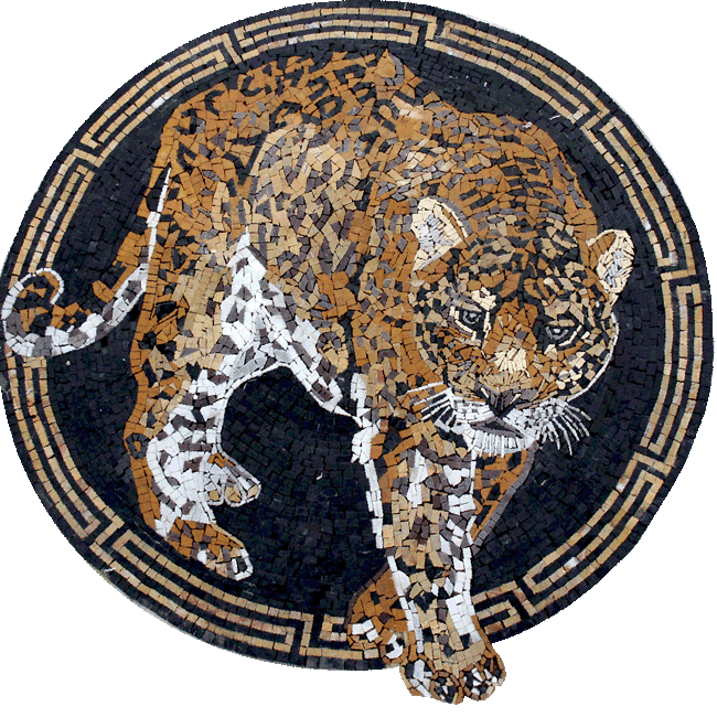 AN1124 Wild tiger inside mosaic medallion with Greek key borders