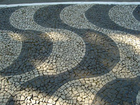 Mosaïques en pierre portugaise qui pavent les rues de Rio et Copacabana.