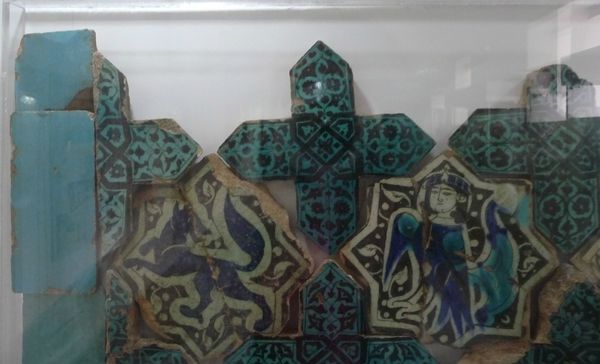 Les morceaux de céramiques , décorés finement dans des tons de bleu et turquoise agrémentés de blanc et noir sont taillés en biseaux et enfoncés dans un mortier blanc. cette technique développée en Anatolie a été influencée par les céramiques iraniennes.dans ses vitrines le musée expose les céramiques Seljoukides du palais de Kubad Abad mises à jour dans les années 60.