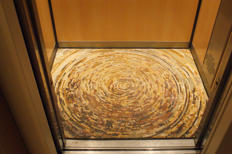 The ultimate classy touch you can add to your elevator? Definitely a floor mosaic rug. This golden abstract mosaic flooring welcomes its guests with warmth and elegance and brings added-value to any elevator. Customizable according to your needs and taste. |
