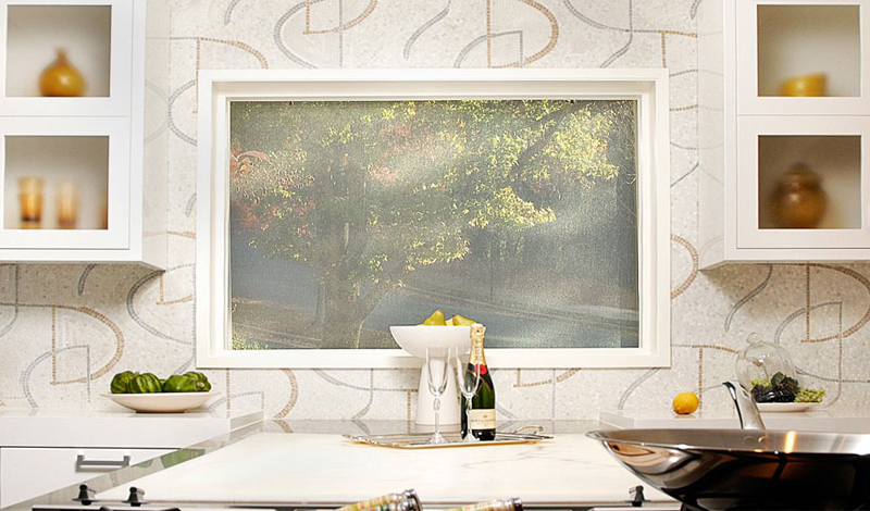 Covering your wall with mosaic tiles gives you endless possibilities of patterns, designs and colors. Whether you want a simple touch of art or wish to fill your space with colors and shapes, everything is possible with mosaic. This simple light-colored pattern mosaic wallpaper installs a comfortable yet elegant mood in the kitchen as seen in this picture. |