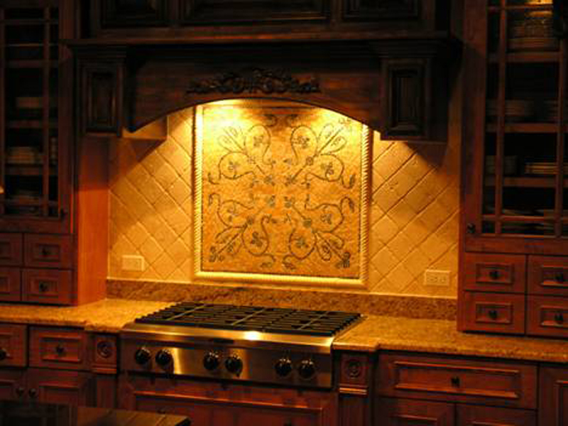 Adding light to your mosaic installations emphasizes the beautiful work of art created by the mosaic tiles. This mosaic backsplash, illuminated by the light projection, sets a warm ambience in the kitchen that completes the warmth brought by the wood. Consider adding light to your mosaic installations for a nicer and more amplified effect. |