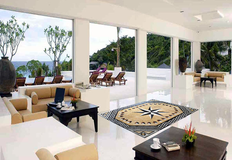 This compass design mosaic rug is an elegant addition to your flooring. With classical patterns and colors, it goes with any style. Placed in the center or in the side, it completes the feel and design of your interior space.