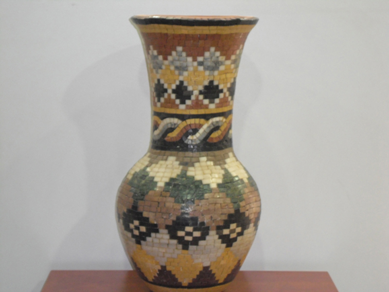 Looking for a unique piece of accessories to spice up your living spaces? This ancient style mosaic vase is the perfect art object to decorate your wooden furniture or any classical theme installed in your interiors.