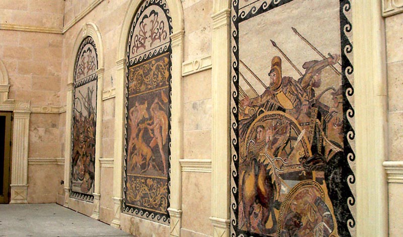 A closer look on the details of our Roman battle scenes mosaics. Intricately designed, they give a historic and noble look to your outdoor area.