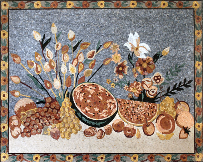 CR154 Beautiful fruit and flowers table mosaic