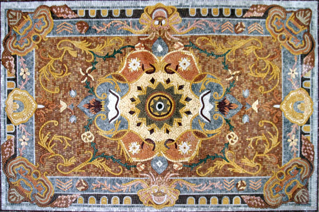 CR172 Golden & blue multi design mosaic carpet