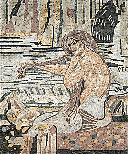 FG398 Mermaid Mosaic Stone Wall Mosaic