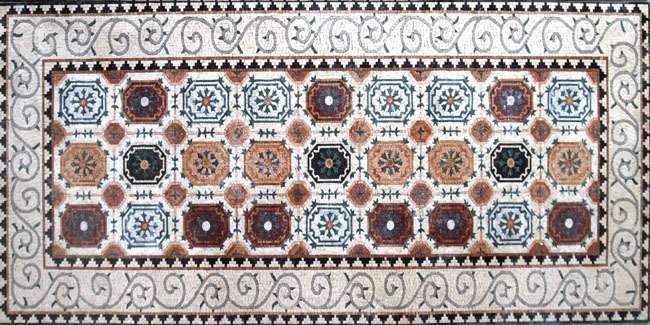 CR238 Elegant black gold & white floral mosaic CR242 Beautiful light blue floral marble mosaic CR403 Beautiful pink rose bouquet mosaic CR3 Artistic floral design mosaic on black background |