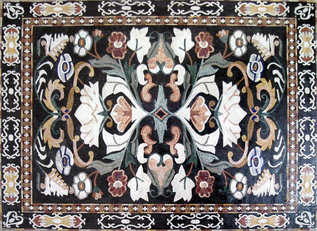 CR238 Elegant black gold & white floral mosaic CR242 Beautiful light blue floral marble mosaic CR403 Beautiful pink rose bouquet mosaic CR3 Artistic floral design mosaic on black background |