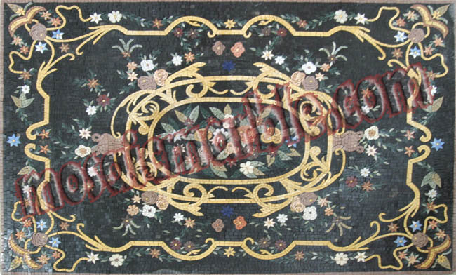 CR238 Elegant black gold & white floral mosaic CR3 Artistic floral design mosaic on black background CR242 Beautiful light blue floral marble mosaic CR403 Beautiful pink rose bouquet mosaic |