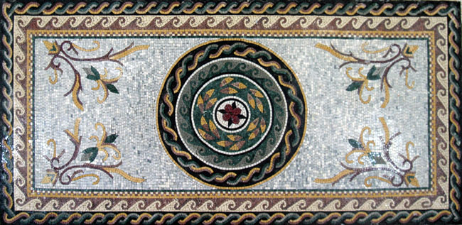 CR197 Roman leaves & flowers mosaic carpet CR87 Central cream yellow medallion with blue background mosaic CR94 Central medallion on golden background mosaic CR161 Green & gold roman leaves and waves border mosaic CR187 Beautiful floral octagram mosaic carpet |