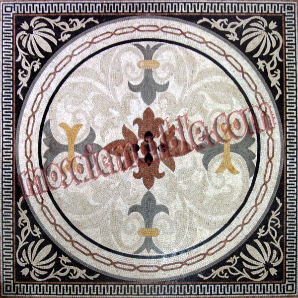 CR181 black gold & white elegant floral art mosaic CR129 Cream yellow & grey floral artistic design mosaic CR568 Colorful fleur de lys design square mosaic CR62 Floral marble mosaic carpet CR138 Artistic floral mosaic carpet |