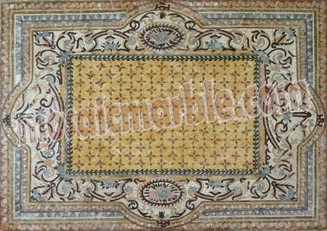 CR129 Cream yellow & grey floral artistic design mosaic