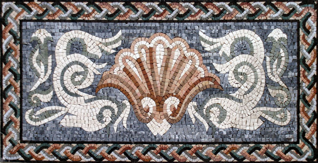 GEO145 Beautiful white dolphins and sea shell mosaic
