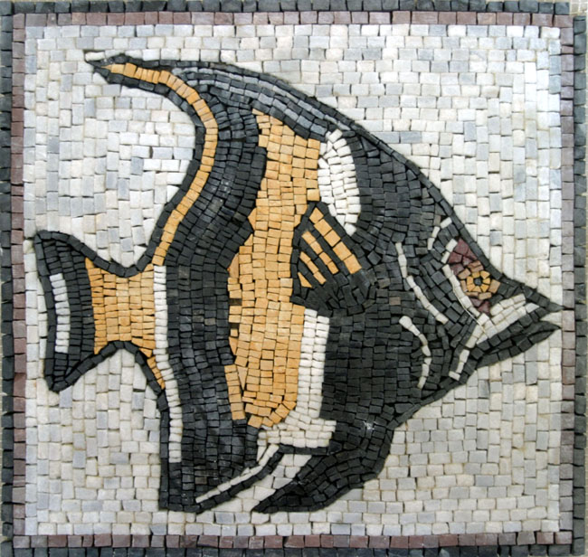 AN86 Black gold & white fish mosaic