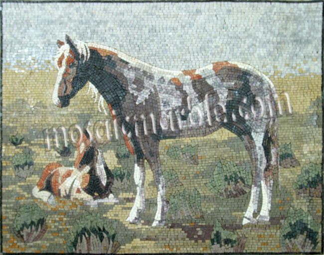 AN657 Horse green landscape mosaic