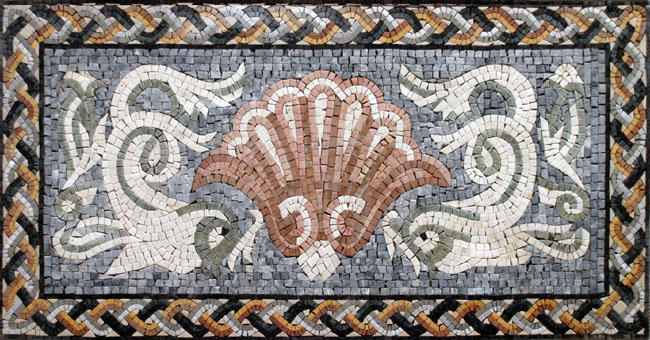 GEO292 Faded white dolphins and sea shell mosaic
