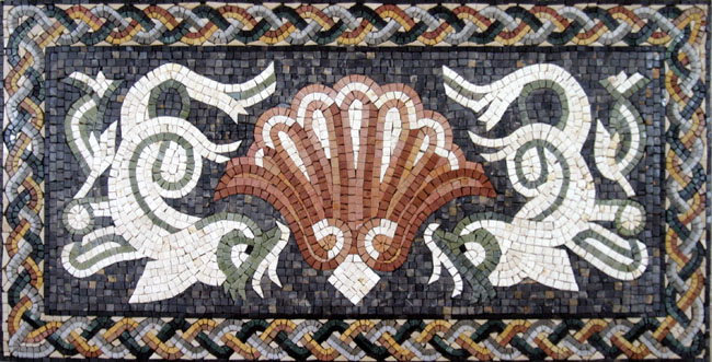 AN208 Jumping dolphins, birds & sun mosaic AN85 B&W dolphin trio mosaic with wave border GEO145 Beautiful white dolphins and sea shell mosaic AN215 Colorful dolphin mosaic GEO292 Faded white dolphins and sea shell mosaic |