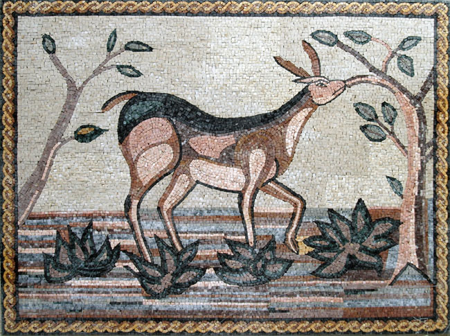 AN110 Gazelle reaching for leave tree mosaic