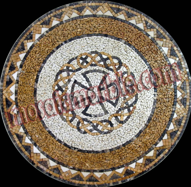 MD846 Central cross in circular design stone mosaic