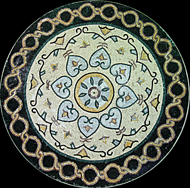 MD69 Heart Flower and Rings B&W Mosaic