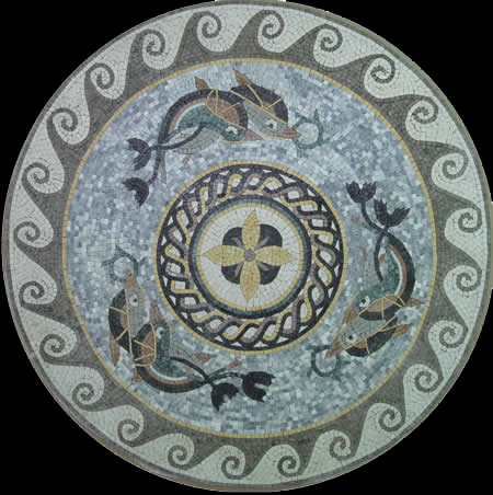 MD278 swimming dolphins mosaic with wave border