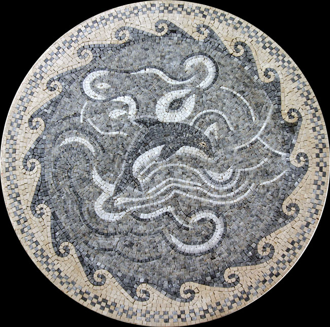 M'informer des mises à jour de MD284 Grey dolphin and waves medallion mosaic