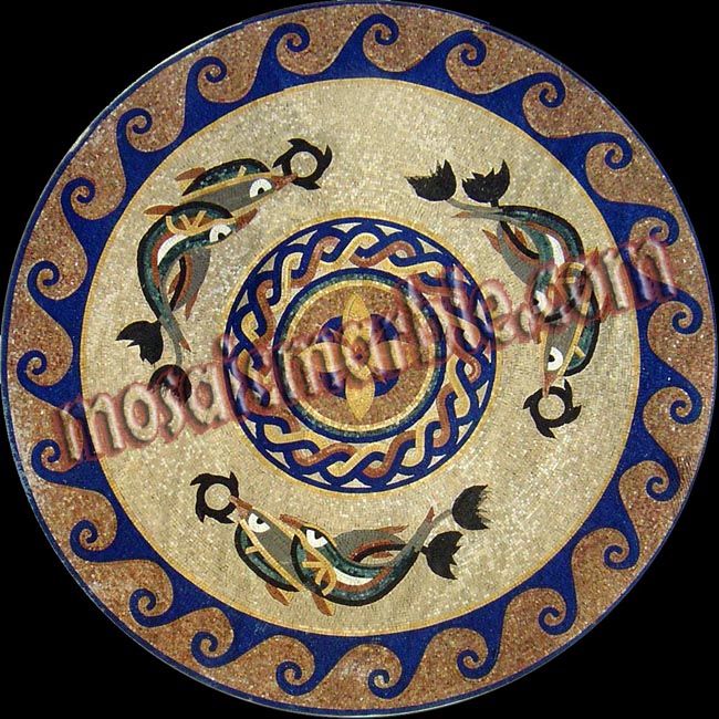 MD695 blue navy & gold swimming dolphins mosaic with wave border