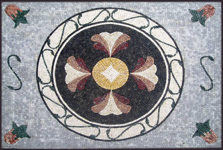 CR181 black gold & white elegant floral art mosaic CR568 Colorful fleur de lys design square mosaic CR129 Cream yellow & grey floral artistic design mosaic CR81 Optical illusion flowers mosaic |