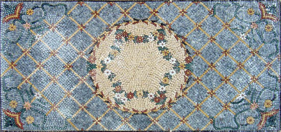 CR238 Elegant black gold & white floral mosaic CR242 Beautiful light blue floral marble mosaic CR403 Beautiful pink rose bouquet mosaic CR3 Artistic floral design mosaic on black background |